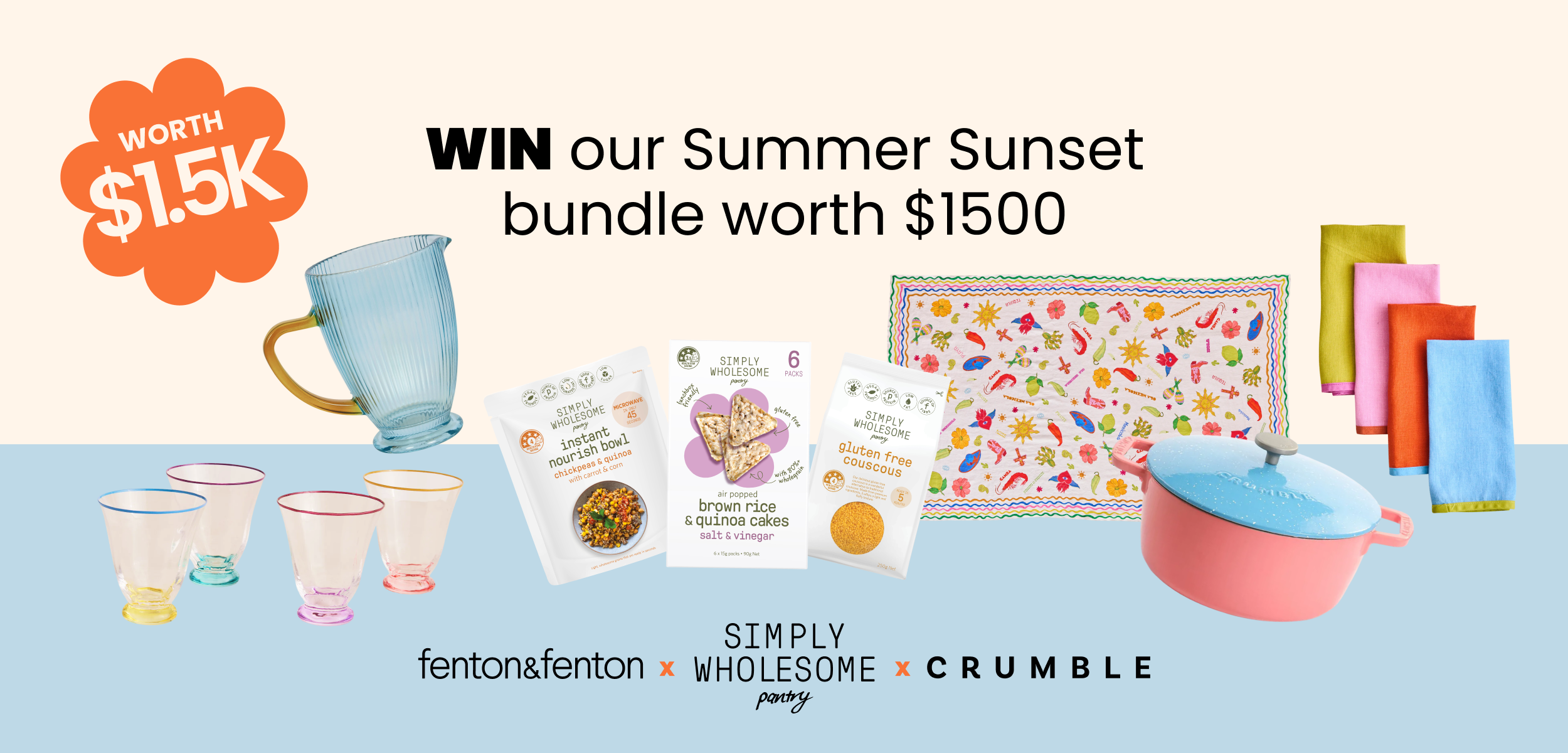 Our Fenton & Fenton x Crumble x Simply Wholesome Pantry Giveaway runs from 11/02/26 to 04/03/26 and every eligible purchase counts as an entry.