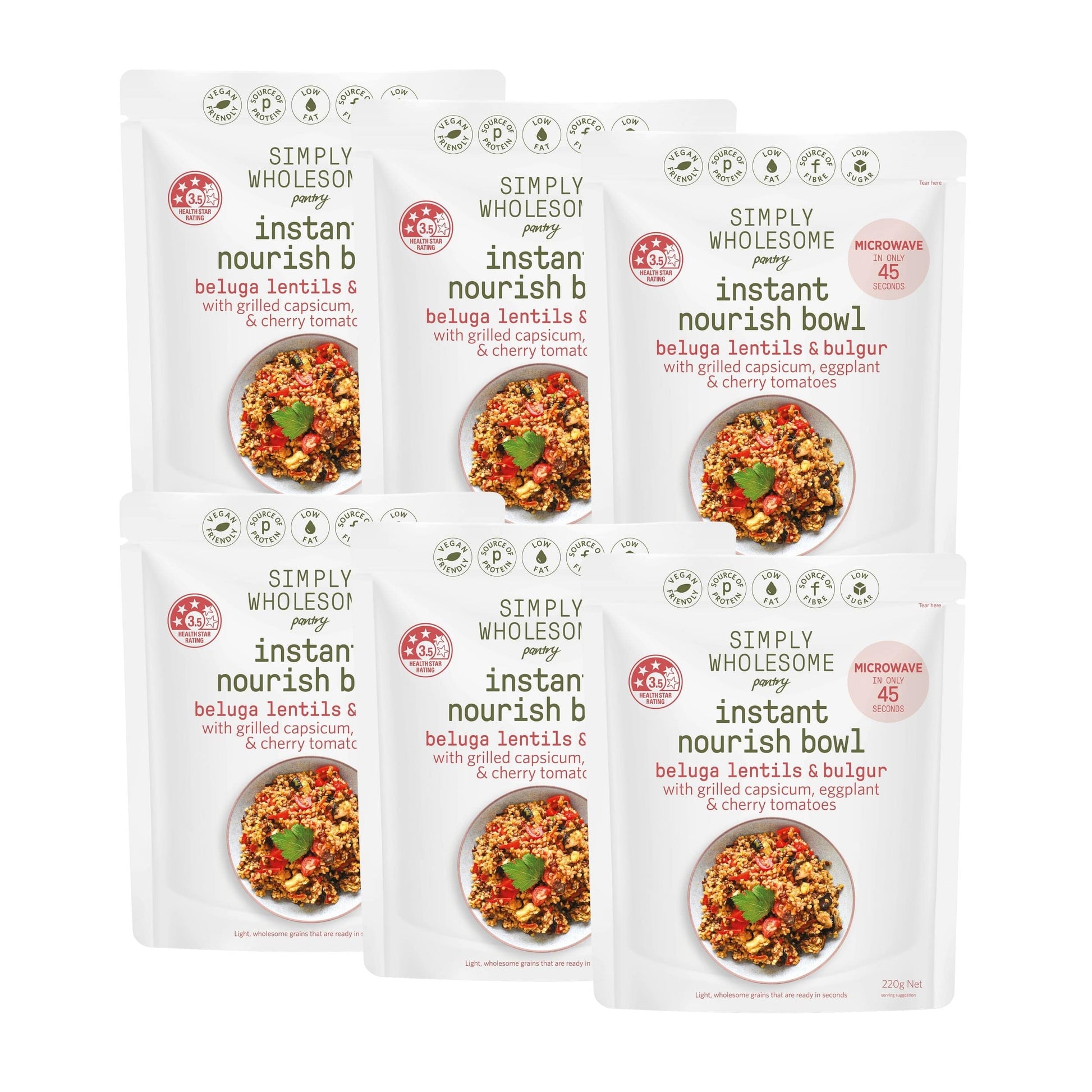 This bundle includes 6 x Beluga Lentils & Bulgur Nourish Bowls (220g each).