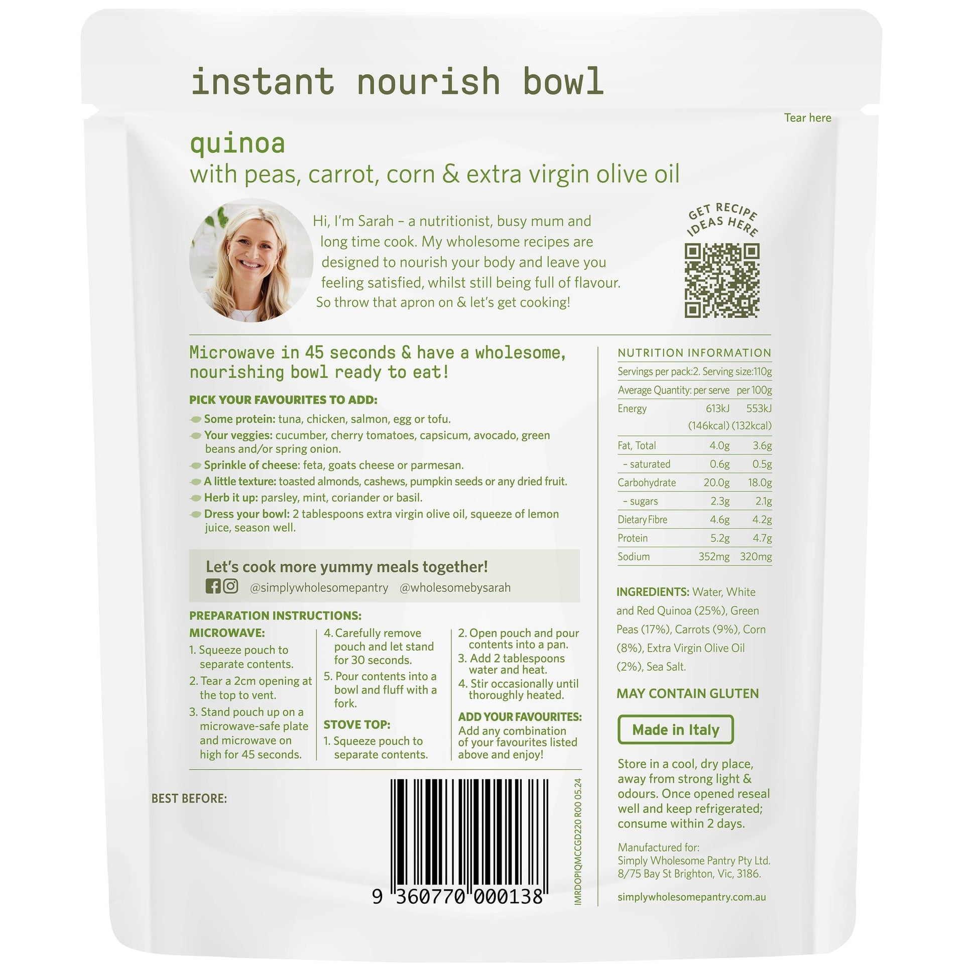 This bundle includes 6 x Quinoa with Peas, Carrot, Corn Nourish Bowls (220g each).